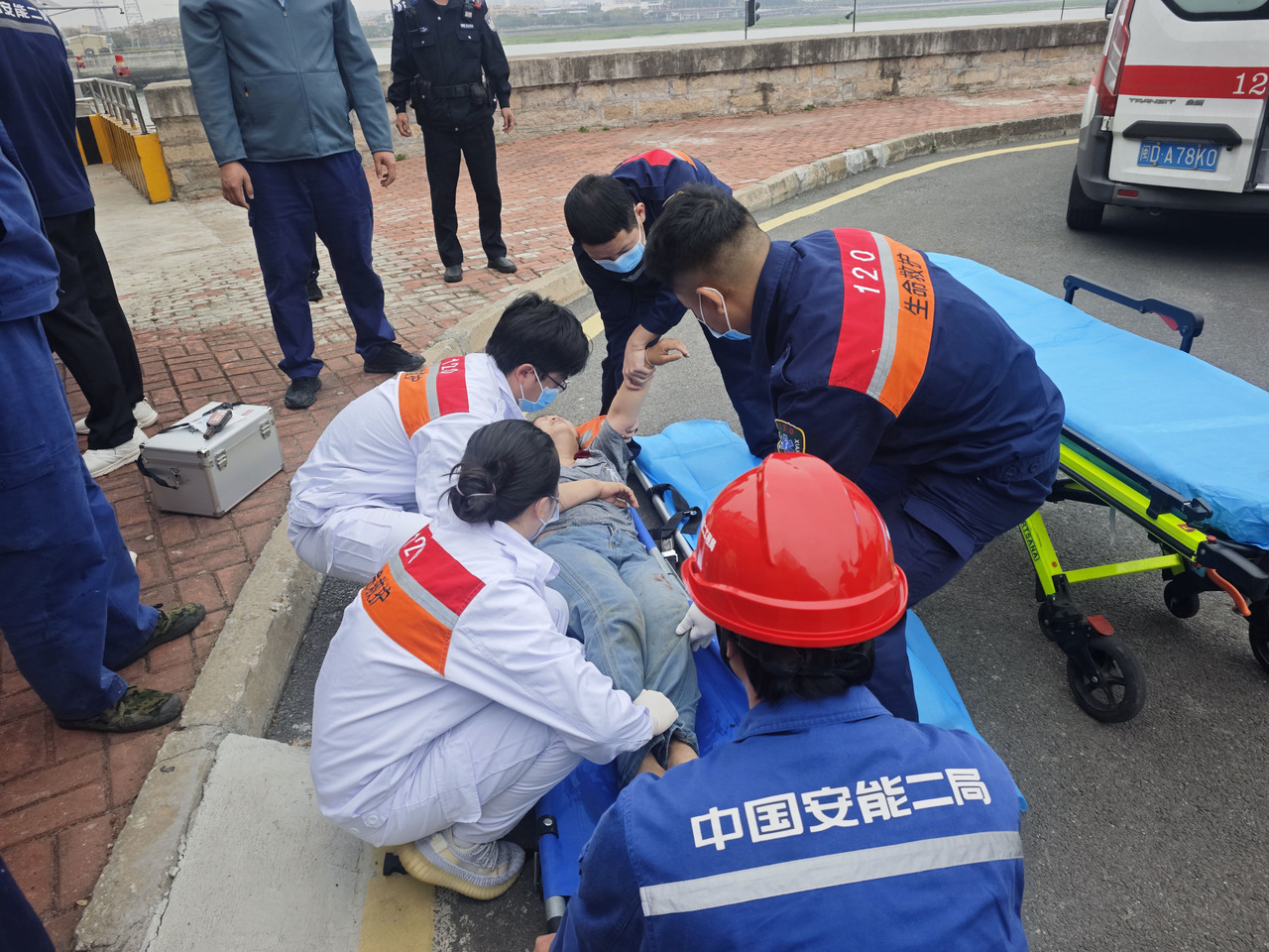 救援现场,项目部团队展现出高效专业的应急处置能力。一方面,立即联系110、120及海事部门,精准报告位置与险情;另一方面,快速调集救生装备,组织救援力量驾驶冲锋舟冲向事发水域。当时海域水流湍急,海况复杂,救援面临严峻挑战。